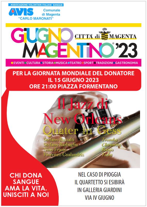 L’evento si inserisce nella programmazione del Giugno Magentino a cui AVIS partecipa con entusiasmo con il duplice obiettivo di contribuire a rendere viva la nostra città e ricordare che c’è sempre bisogno di donatrici e donatori di sangue per “condividere” la vita, come suggerisce lo slogan della nostra Giornata Mondiale.