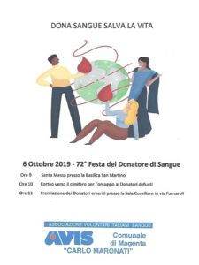 Il prossimo 6 ottobre si terrà la 72^ Festa del Donatore di Sangue della sezione AVIS di Magenta.