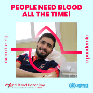 L’iniziativa, che ha come slogan “Give blood and make the world a healthier place” (in italiano, “Dona il sangue e rendi il mondo un posto più sano”), punta a coinvolgere le associazioni per fornire un impatto ancor più importante alla Giornata mondiale e, soprattutto, per riconoscere lo straordinario contributo che il mondo del volontariato ha fornito e sta fornendo anche in questo periodo con le celebrazioni previste in Italia rinviate al 2021.